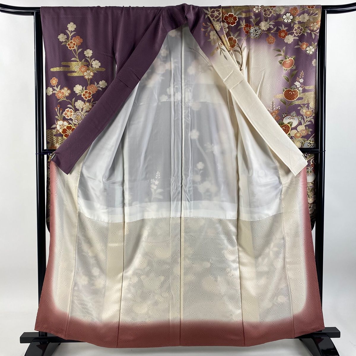 振袖 身丈167cm 裄丈66cm M 袷 袋帯フルセット ますいわ屋 梅 竹 金糸 金彩 赤茶 正絹 秀品