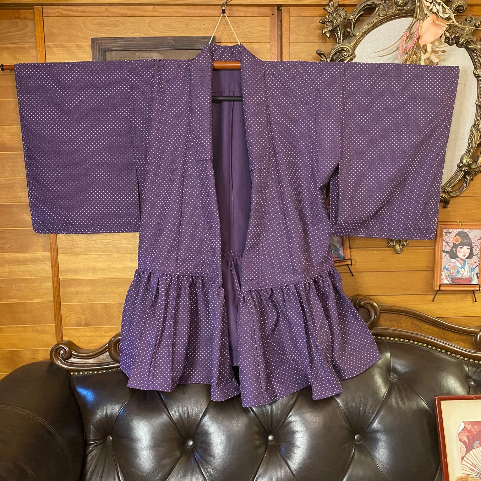 着物 2way ガウン 羽織り ドレス ワンピース ハンドメイド 和洋折衷 洗える 化繊 リメイク 帯サッシュベルト レトロ 古着 深みのある葡萄紫に 小ドット KD-62の検索結果
