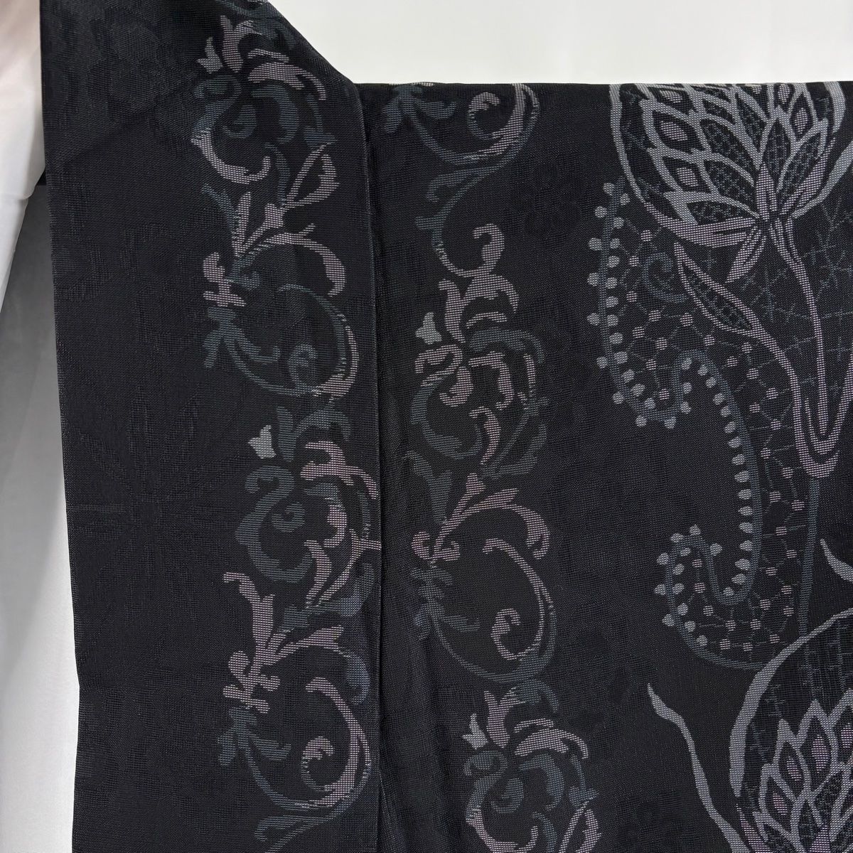 お召 身丈162cm 裄丈66cm M 袷 やまと 袋帯セット 草花 唐草 墨色 正絹 秀品の検索結果