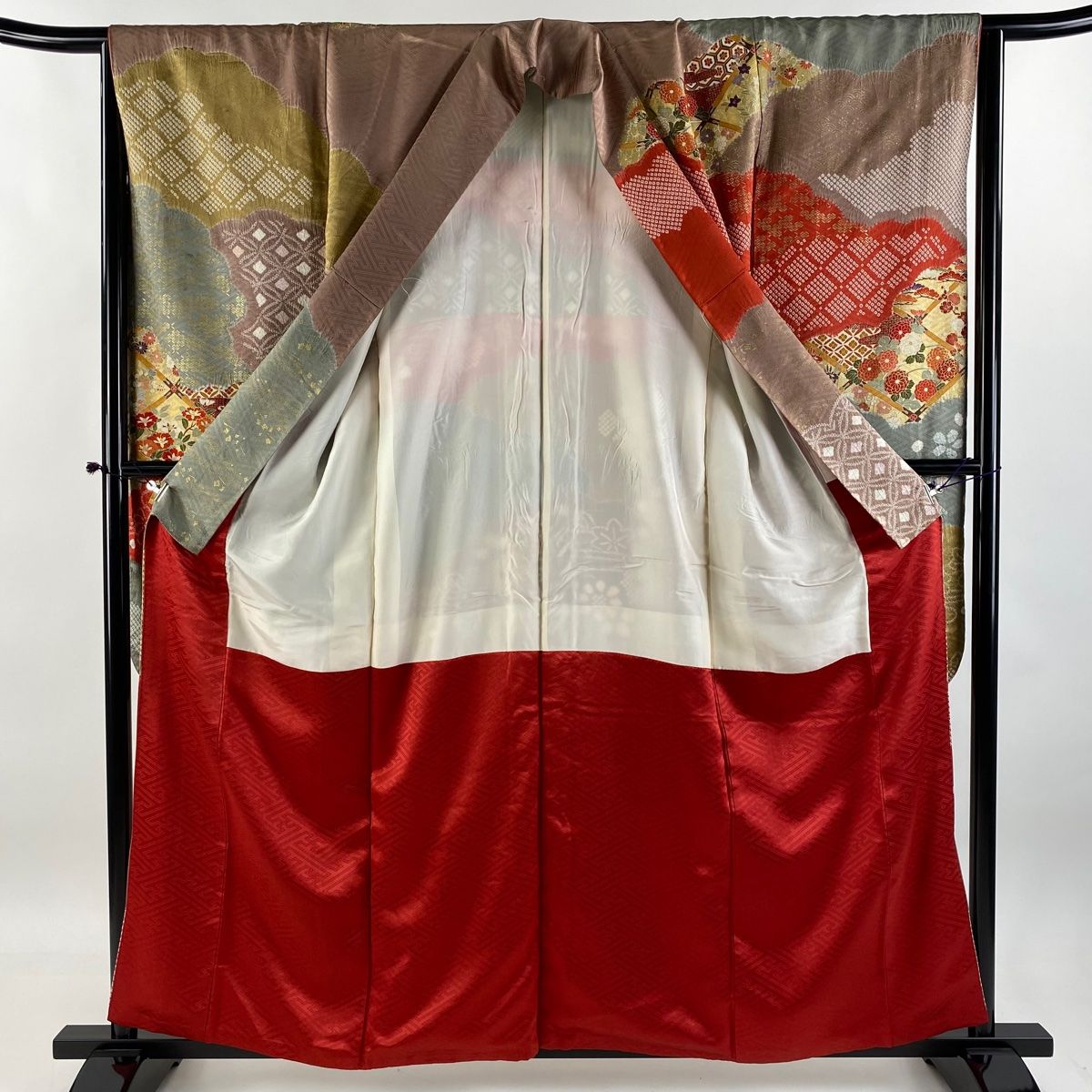 振袖 身丈165.5cm 裄丈67cm M 袷 松竹梅 宝尽くし 金銀彩 絞り 赤 正絹 秀品