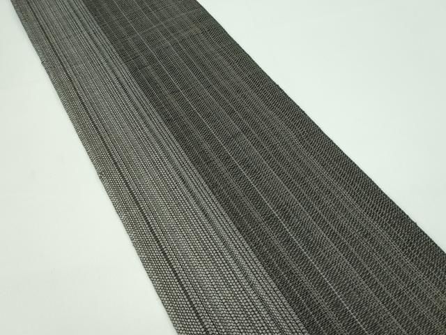 半幅帯 秀品 証紙 博多織 縞 地紋 灰色 正絹