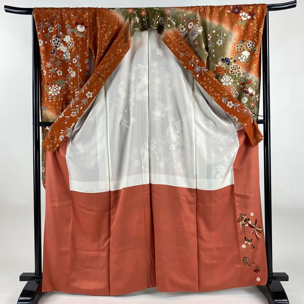 振袖 身丈166cm 裄丈68cm L 袷 花丸文 草花 金彩 ぼかし 赤茶 正絹の検索結果
