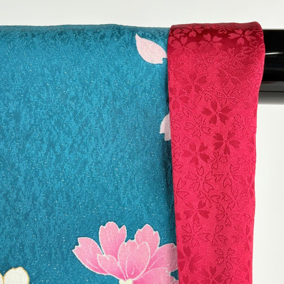 振袖 身丈152cm 裄丈62cm S 袷 草花 桜 銀通し ラメ 青緑 正絹の検索結果