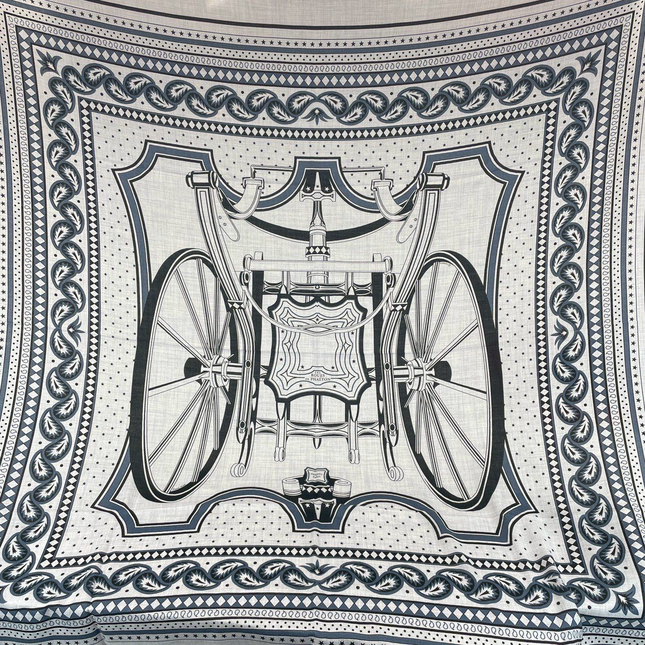 Hermès エルメス Châle 140 Les Roues de Phaéton カレジュアン140 四輪馬車の車輪 カシミア70 シルク30 gris chiné ardoise clair Black WWW_GLOBALQUALITYIMPORTS_COM