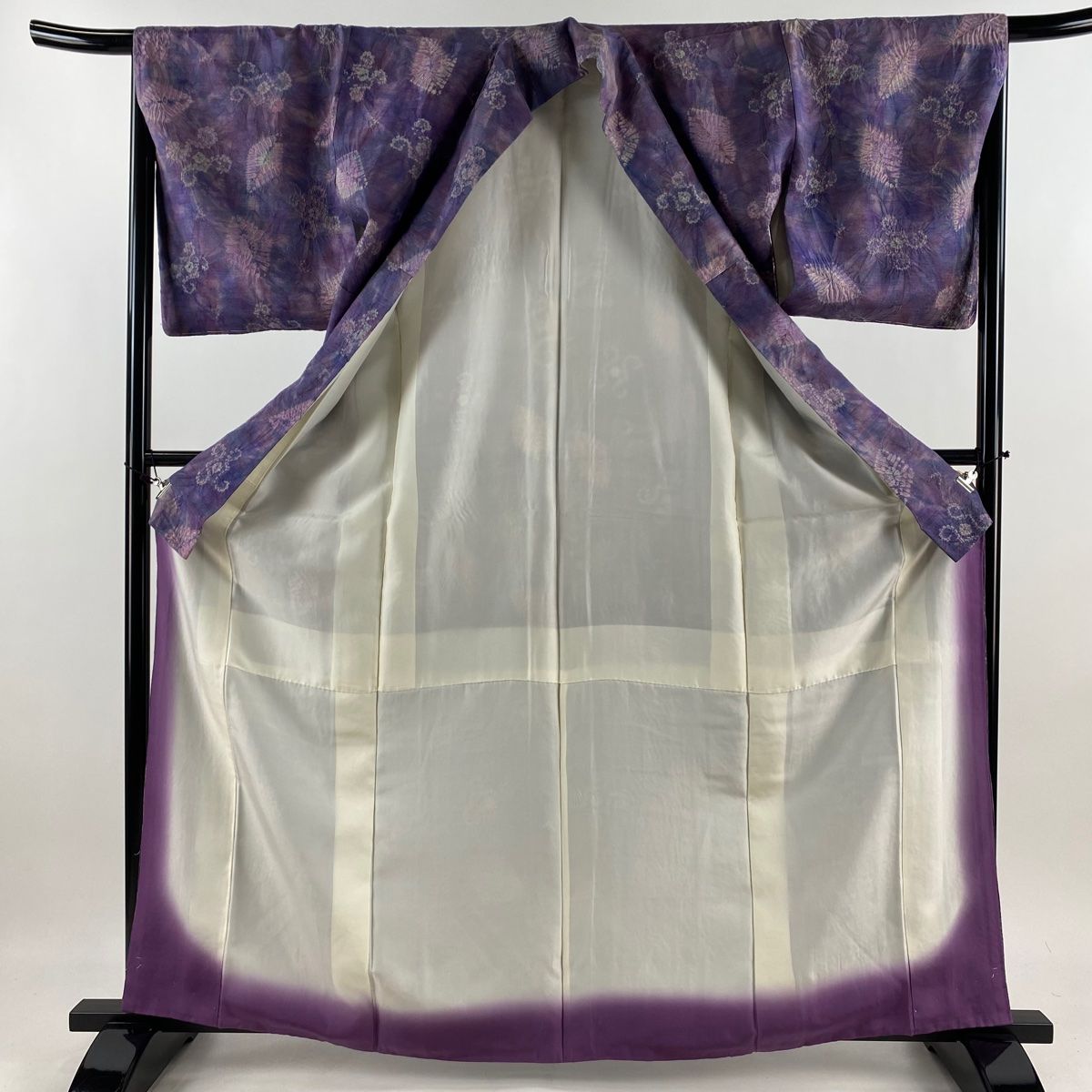 小紋 身丈165cm 裄丈66.5cm M 袷 紬地 やまと 唐草 菱 絞り ぼかし 紫 正絹の検索結果