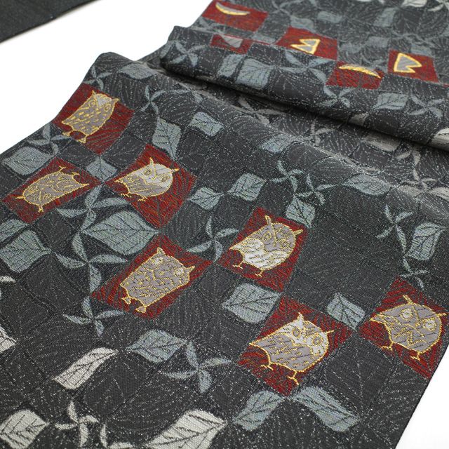 袋帯 リサイクル 誉田屋源兵衛 特選工芸 福禄樹帯 森の妖精 ふくろう 濃グレー 花 木の葉 金銀箔糸 銀糸 カジュアル 春 秋 冬 仕立て上がり みやがわ sb54562 WWW_GLOBALQUALITYIMPORTS_COM