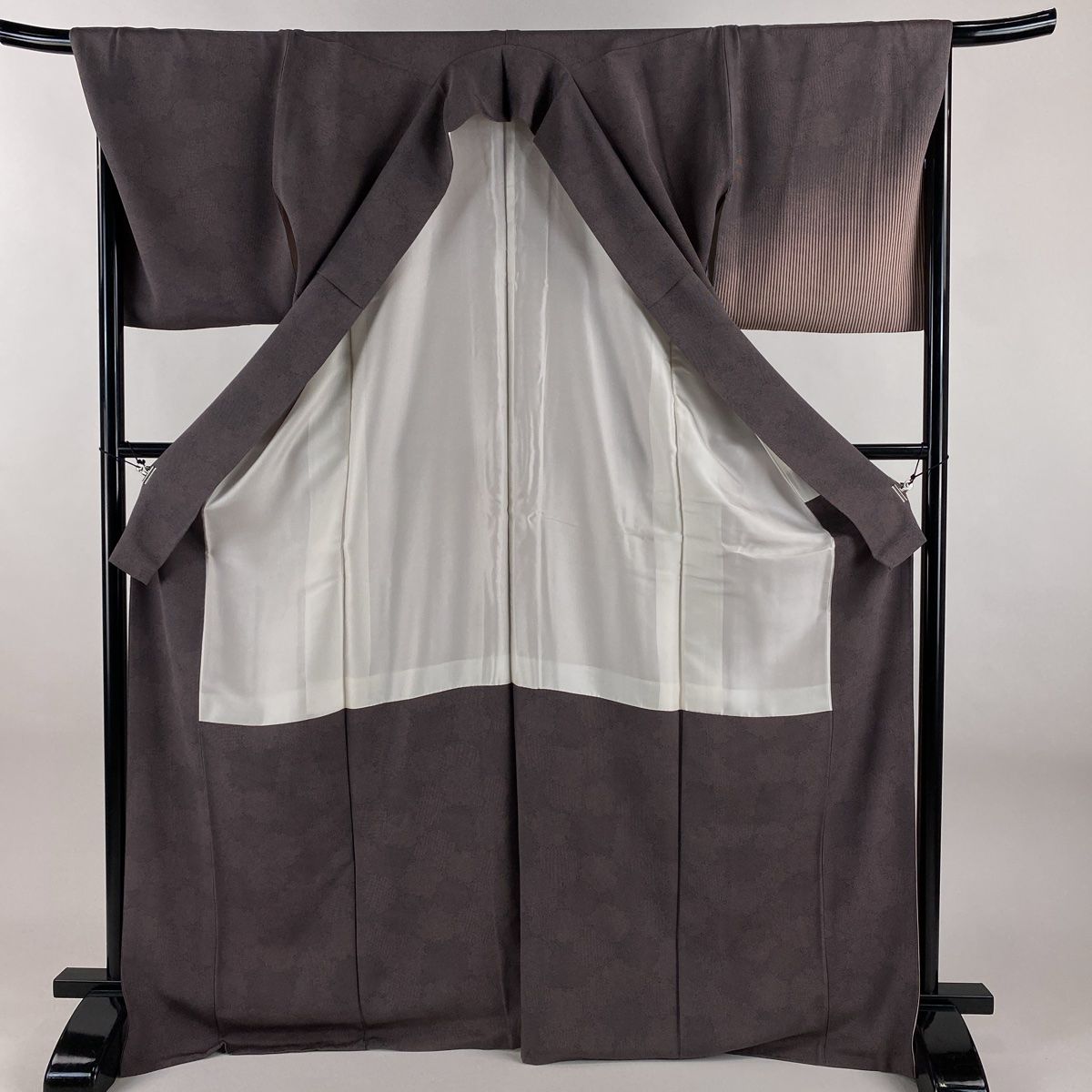 付下げ 身丈161.5cm 裄丈64.5cm M 袷 草花 シルエット 灰茶 正絹 秀品