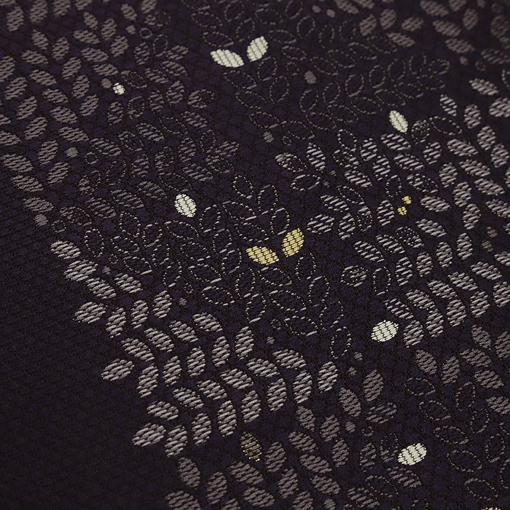 名古屋帯 博多織 正絹 紫 市松 葉 リサイクル 博多帯 カジュアル お洒落 八寸 仕立て上がり No.i6-2358 WWW_GLOBALQUALITYIMPORTS_COM