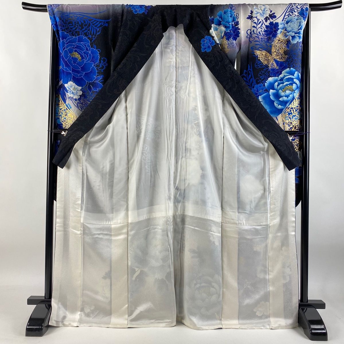 振袖 身丈170cm 裄丈67cm M 袷 牡丹 蝶 金彩 銀通し 黒 正絹の検索結果
