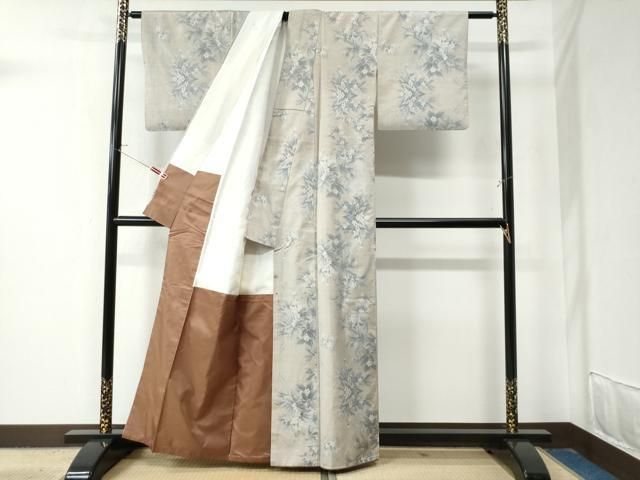 平和屋着物 本場結城紬 重要無形文化財 100亀甲 エ霞色紙花文 正絹 AABC4148ck