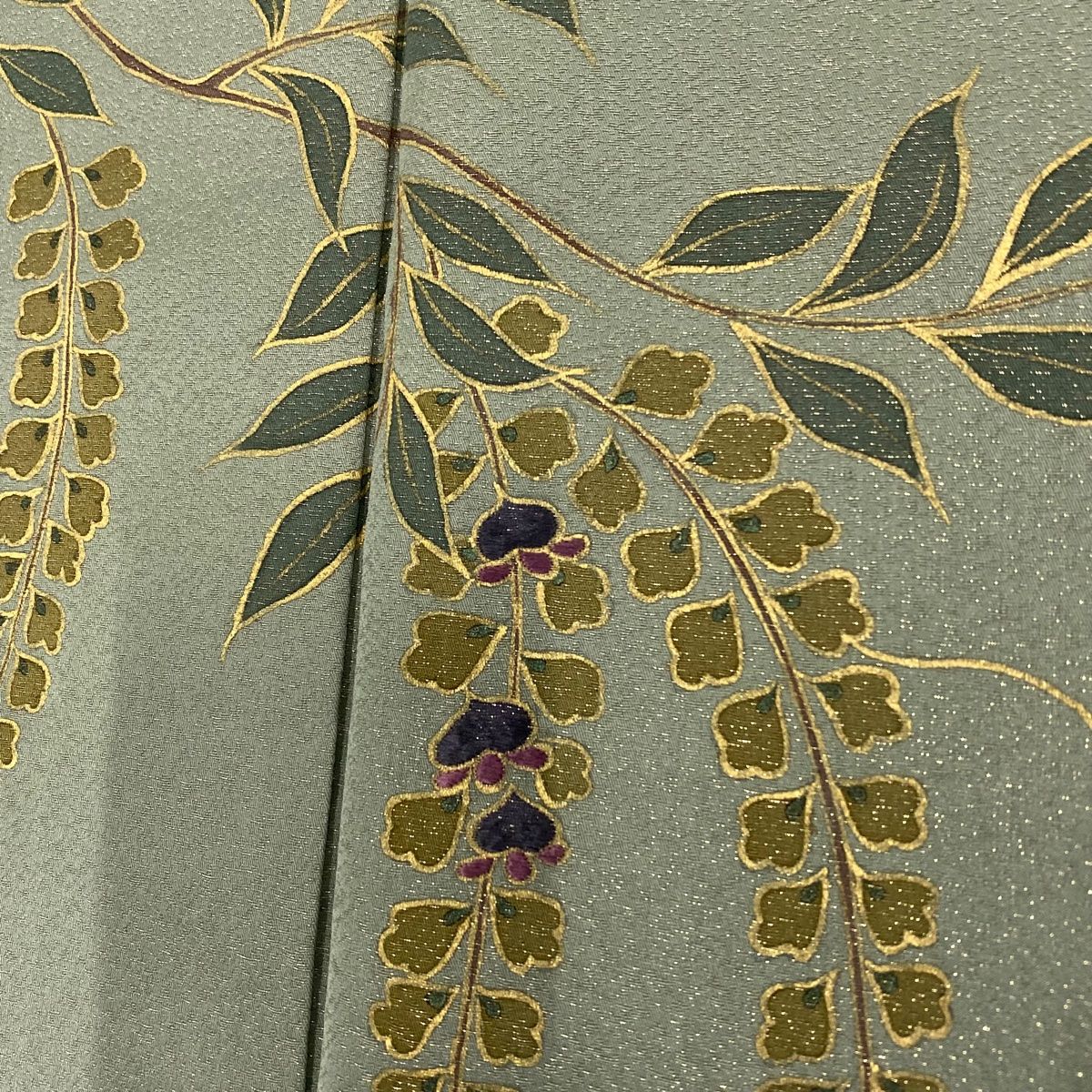 付下げ 身丈170.5cm 裄丈68.5cm L 袷 藤 変わり市松 金通し 刺繍 灰緑 正絹 秀品の検索結果