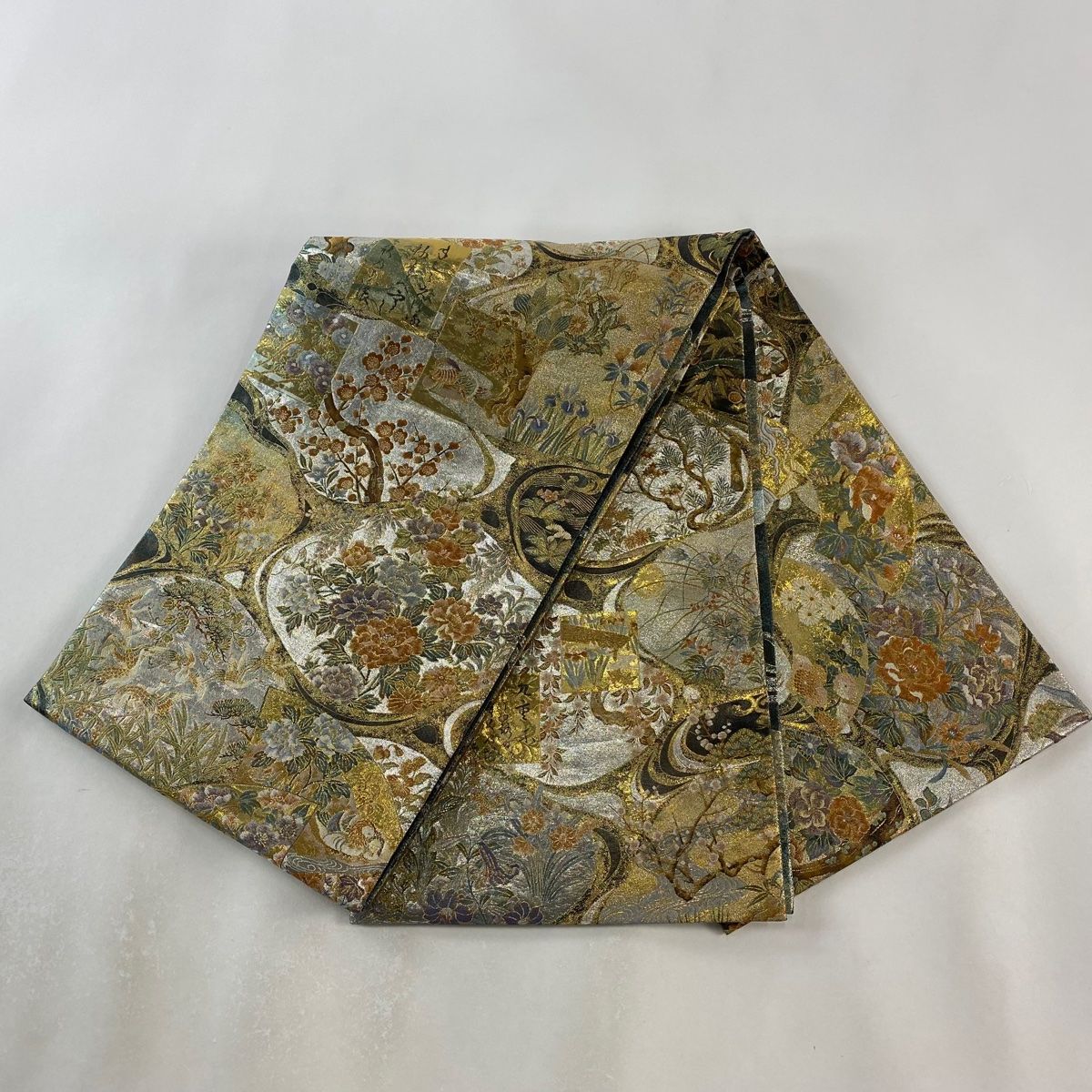 丸帯 琳派流水名勝図 箔 金糸 墨色 お太鼓柄 正絹 WWW_GLOBALQUALITYIMPORTS_COM