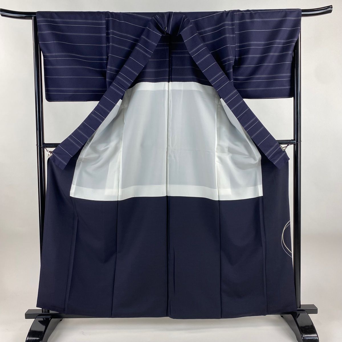 お召 身丈162cm 裄丈64.5cm M 袷 衣宝山 やまと 背抜き 落款 証紙 縞 市松 紺色 正絹 WWW_GLOBALQUALITYIMPORTS_COM