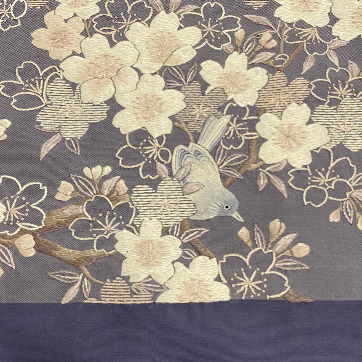 付下げ 身丈156cm 裄丈64cm M 袷 紬地 やまと 落款 桜 鳥 刺繍 青紫 正絹の検索結果