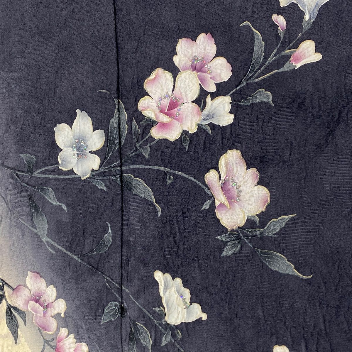 振袖 身丈161cm 裄丈67cm M 袷 やまと 枝花 地紋 ラメ ぼかし 灰色 正絹 WWW_GLOBALQUALITYIMPORTS_COM