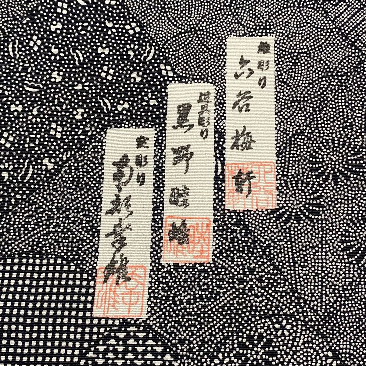江戸小紋 身丈163.5cm 裄丈64.5cm M 袷 人間国宝 六谷梅軒 落款 山並み 寄せ柄 黒灰 正絹 WWW_GLOBALQUALITYIMPORTS_COM