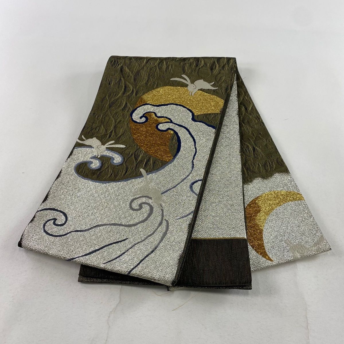 袋帯 うさぎと月 波頭 金糸 箔 銀色 お太鼓柄 正絹の検索結果