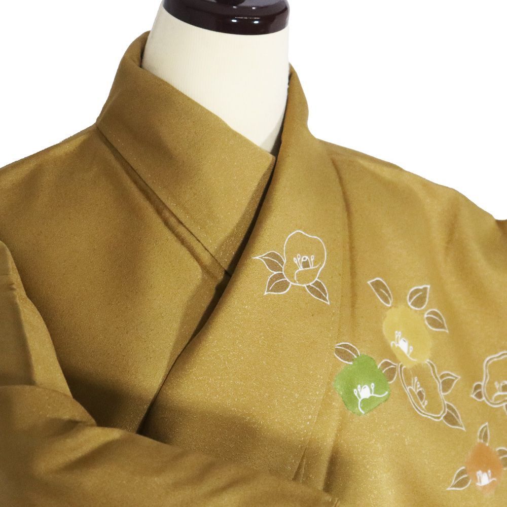 訪問着 袷 正絹 黄土色 赤茶 金箔 暈し 椿 SSサイズ ki31151 レディース シルク ギフト フォーマル 30代 40代 50代 み WWW_GLOBALQUALITYIMPORTS_COM