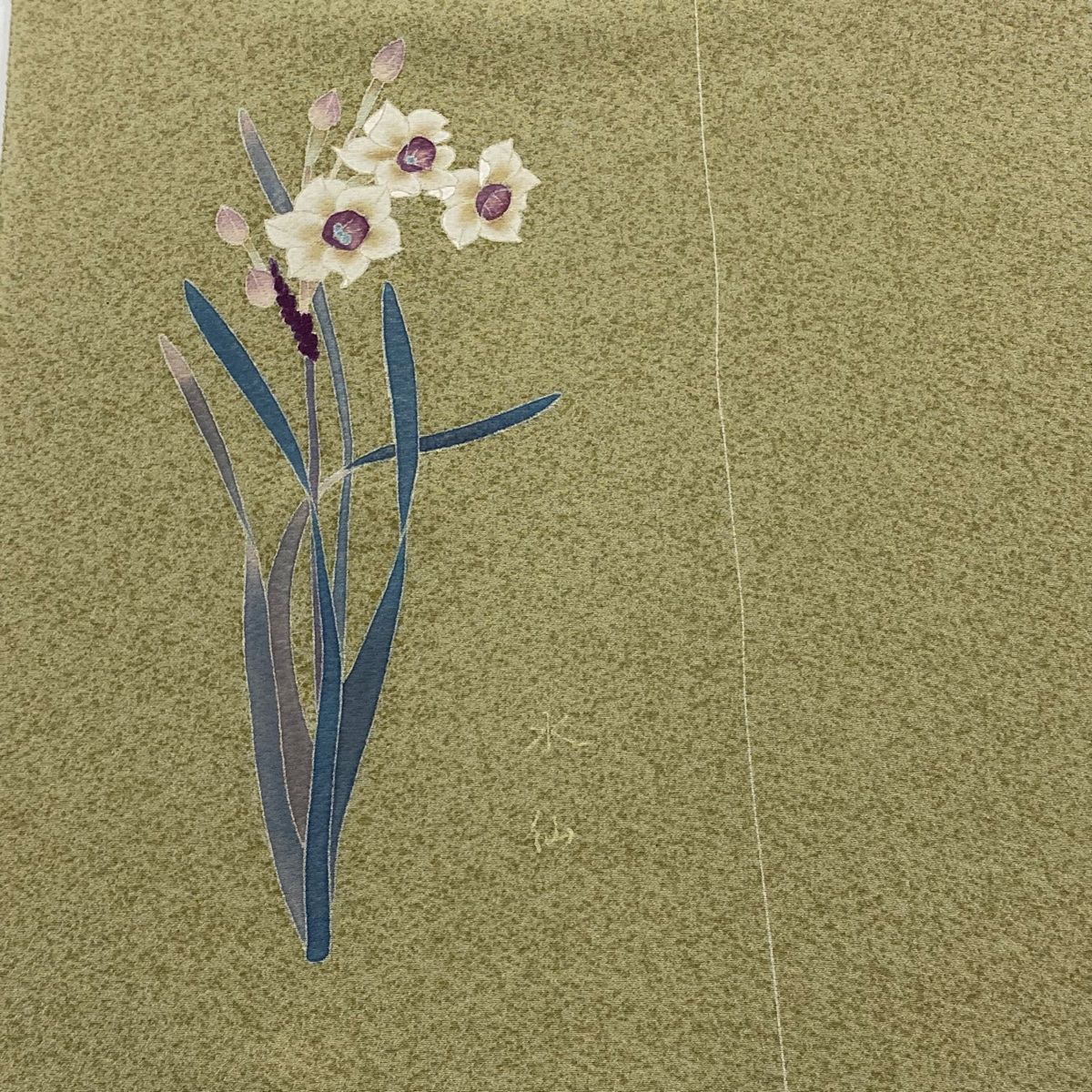 反物 小紋 加賀友禅 落款 杉浦伸 幾何学模様 叩き染め風 ベージュ 正絹 WWW_GLOBALQUALITYIMPORTS_COM
