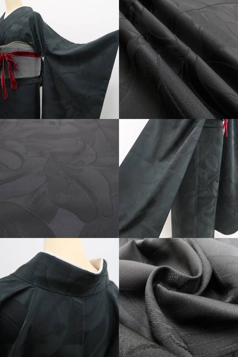 ❁tomihisa❁ 百合 無地 モノトーン 洗える着物 成人式 仕付け糸付 秘めたる華やかさを纏う漆黒の百合 トールサイズ 振袖 6000 WWW_GLOBALQUALITYIMPORTS_COM