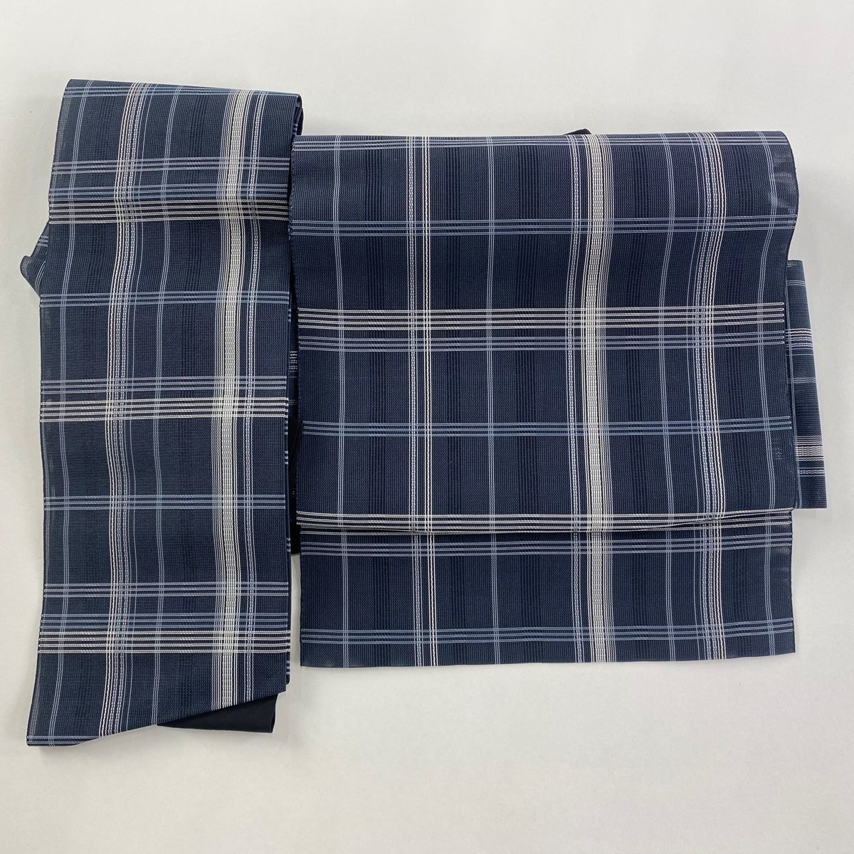 付け帯 秀品 証紙 本場筑前博多織 夏帯 作り帯 格子 紺色 正絹 WWW_GLOBALQUALITYIMPORTS_COM