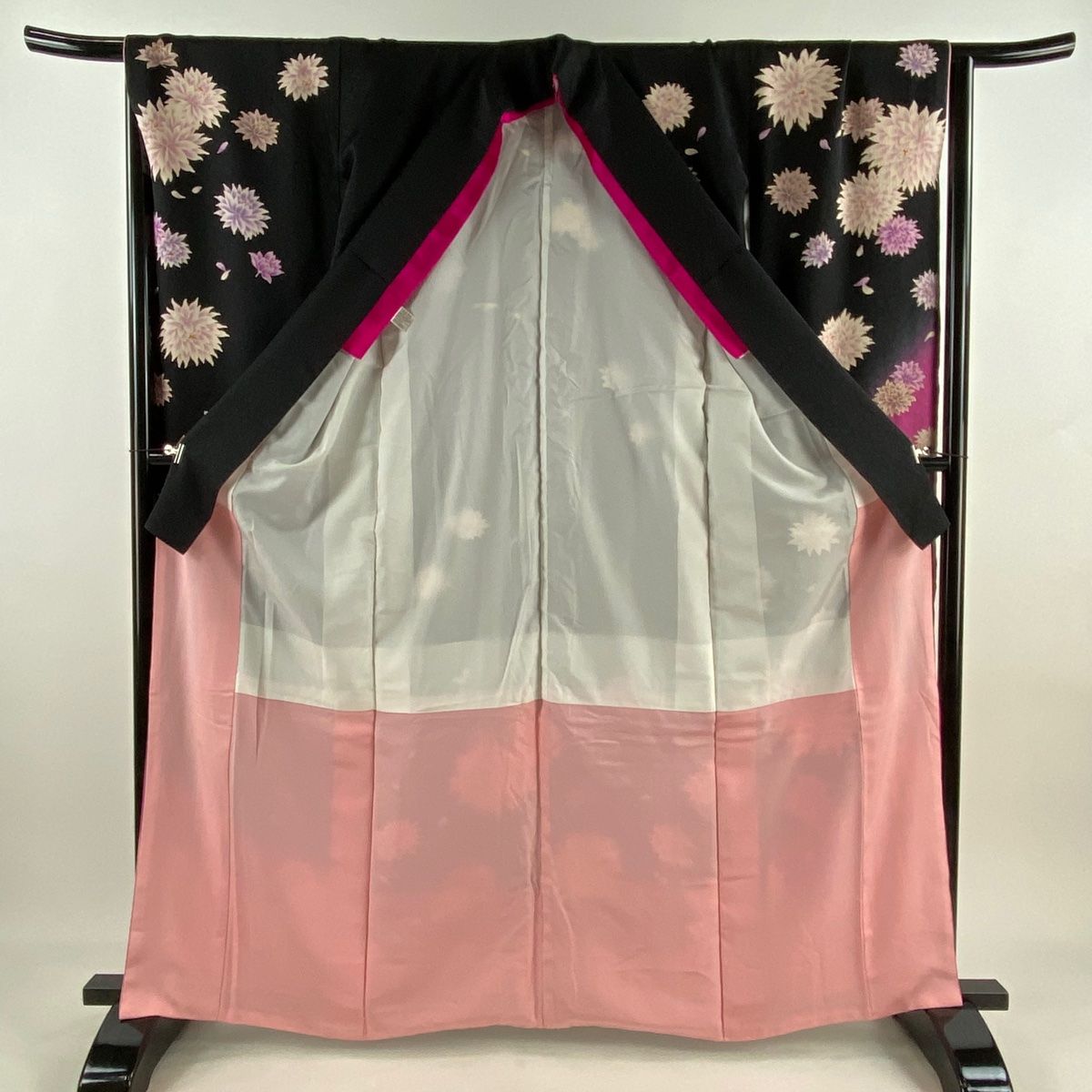 振袖 身丈163.5cm 裄丈67cm M 袷 落款 花 地紋 銀通し 刺繍 黒 正絹 WWW_GLOBALQUALITYIMPORTS_COM