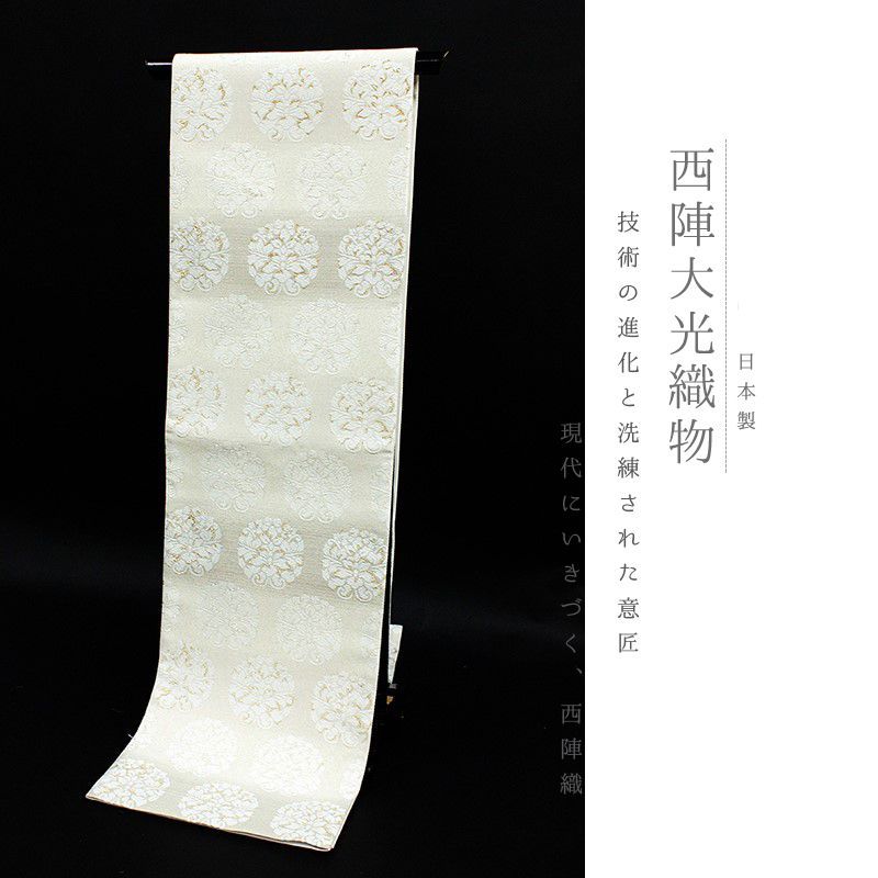 袋帯 正絹 上の唐織 西陣織 白地 オフホワイト 華文 横段 金銀糸 西陣 大光 礼装用 フォーマル 上品 お仕立て上がり 結 No.10-3508 WWW_GLOBALQUALITYIMPORTS_COM
