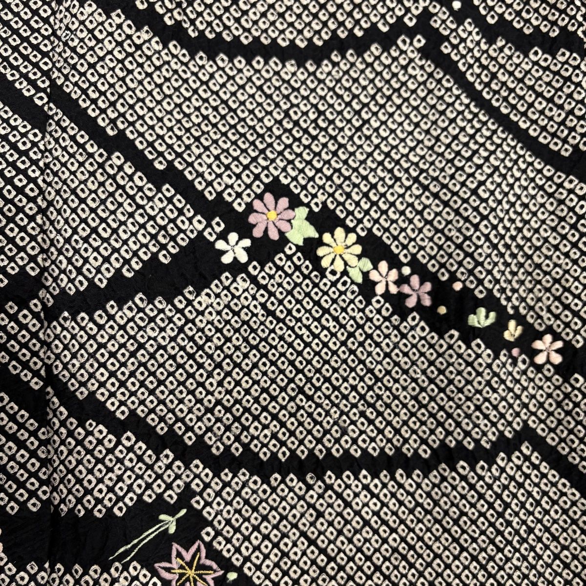 訪問着 身丈154cm 裄丈61cm S 袷 草花 幾何学 刺繍 絞り 黒 正絹 秀品 WWW_GLOBALQUALITYIMPORTS_COM
