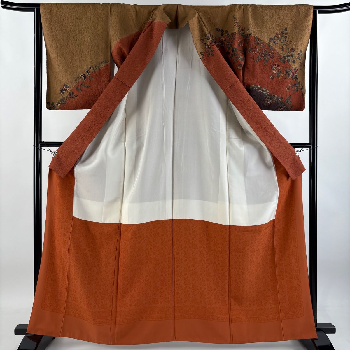 訪問着 身丈165cm 裄丈64cm M 袷 やまと 草花 染め分け 赤茶 正絹 秀品の検索結果