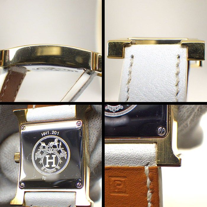 エルメス HERMES 腕時計 Hウォッチ HH1.201 スクエア オレンジ文字盤 GP SS ホワイト ヴォー エプソン レザーベルト クオーツアナログ WWW_GLOBALQUALITYIMPORTS_COM