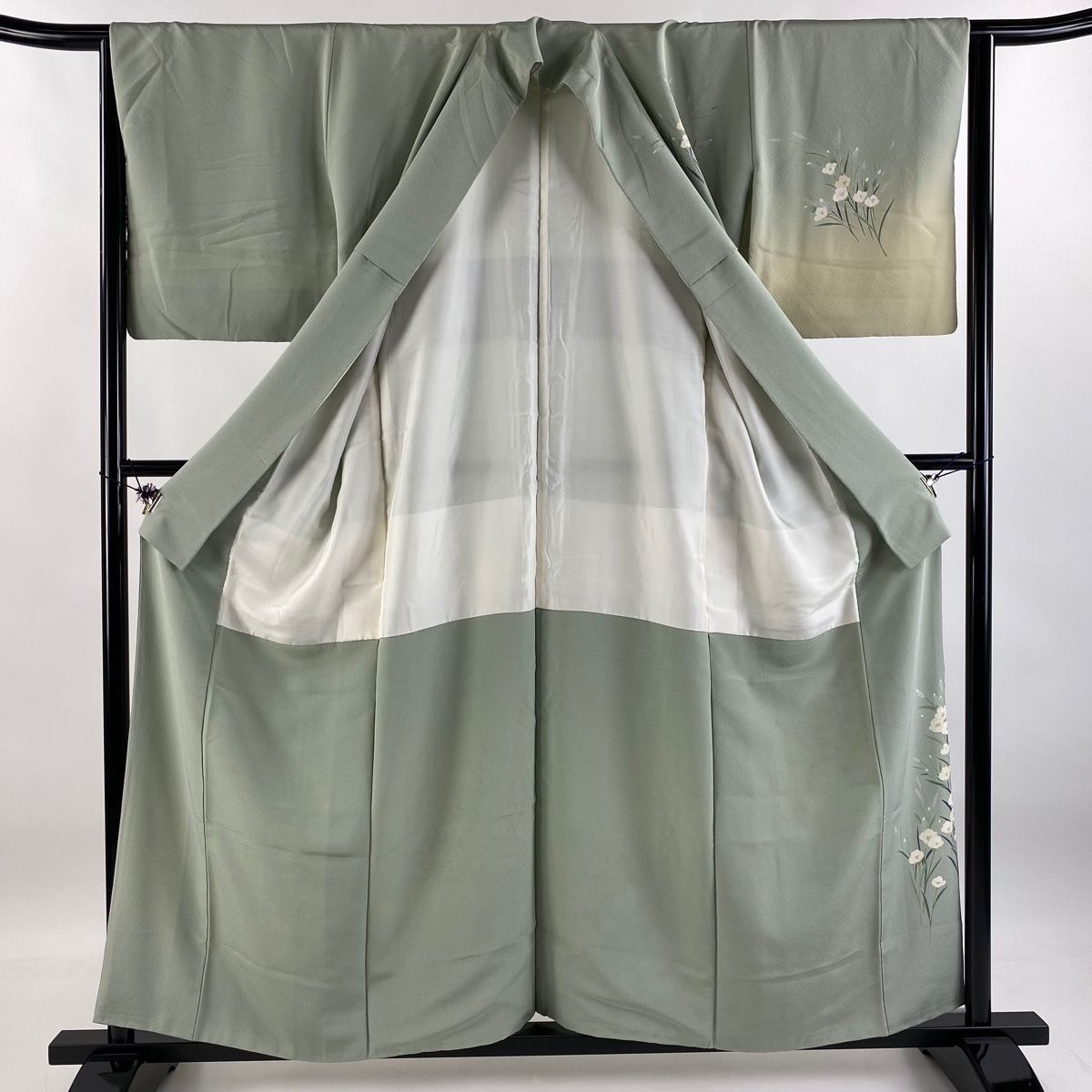 訪問着 身丈157.5cm 裄丈66cm M 袷 田村哲彦 加賀友禅 落款 草花 染め分け ぼかし 薄緑 正絹 WWW_GLOBALQUALITYIMPORTS_COM