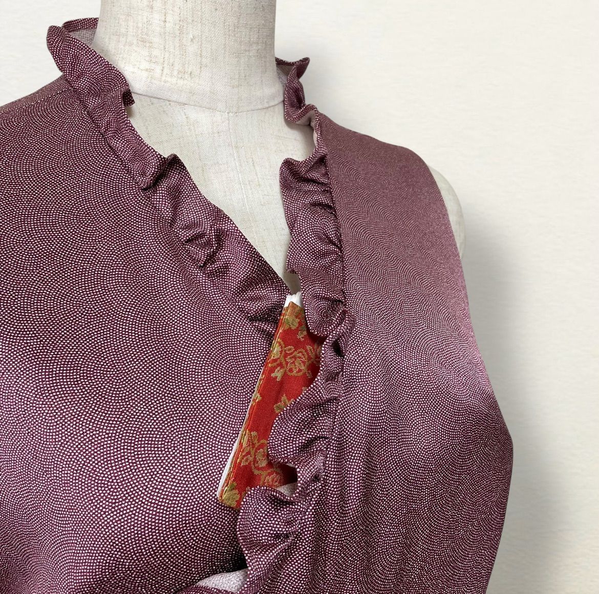 Newデザイン ︎江戸小紋 サッシュベルト付き Kanataの茶道ドレス 落ち着いた暗めの赤が大人な雰囲気 鮫小紋のお着物で作った 茶道お稽古着 手提げ袋付 逆勝手兼用 WWW_GLOBALQUALITYIMPORTS_COM