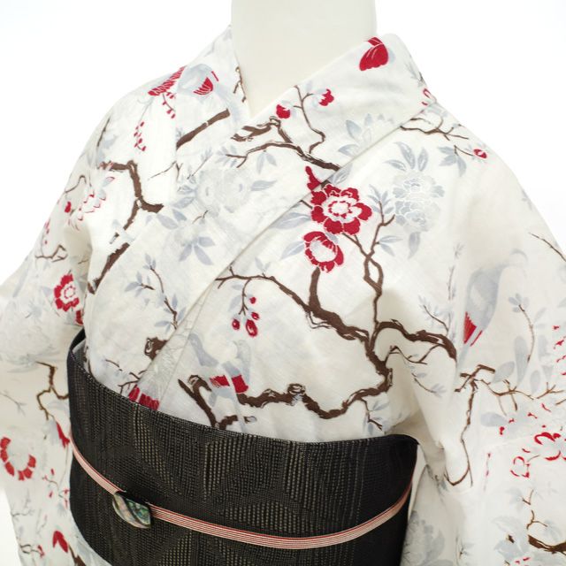 夏物 浴衣 誉田屋源兵衛 ゆかた 木綿 綿 支那の夜 白地 花鳥 銀彩加工 夏 カジュアル 手縫い仕立て 居敷当て仕立て 仕立て上がり 身丈160 裄丈63.5 TLサイズ トールサイズ みやがわ sb16239 WWW_GLOBALQUALITYIMPORTS_COM