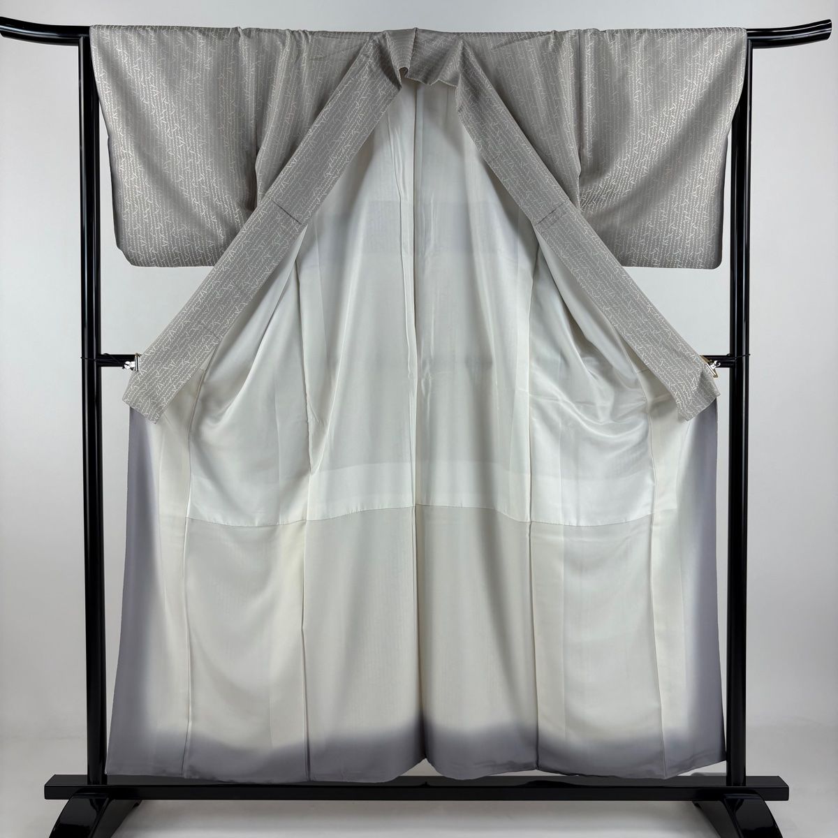 お召 身丈156cm 裄丈64.5cm M 袷 縦縞 幾何学模様 灰色 正絹 WWW_GLOBALQUALITYIMPORTS_COM