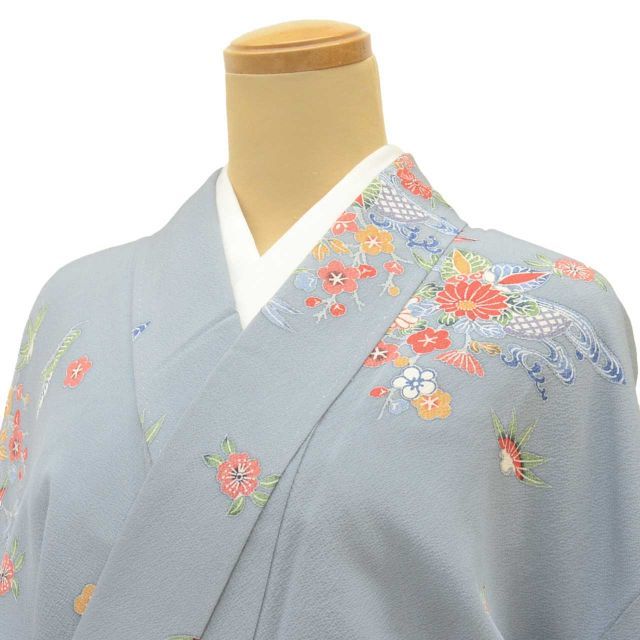 リサイクル着物 小紋 正絹 絹 SILK シルク Mサイズ 身丈159cm 裄丈64.6cm 袷 仕立て上がり 縮緬 紅型 グレー 花 リユース uu1768b WWW_GLOBALQUALITYIMPORTS_COM