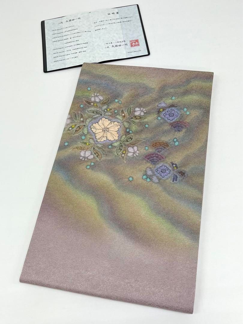 二代 久保田一竹 辻ヶ花 落款入 袋帯 銀通し 正絹 お太鼓柄 証明書付きの検索結果