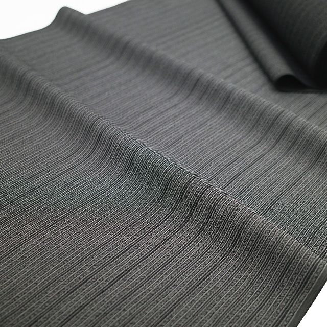 こちらの 反物 は、シックな グレーでスタイリッシュな縞が織り上げられています。