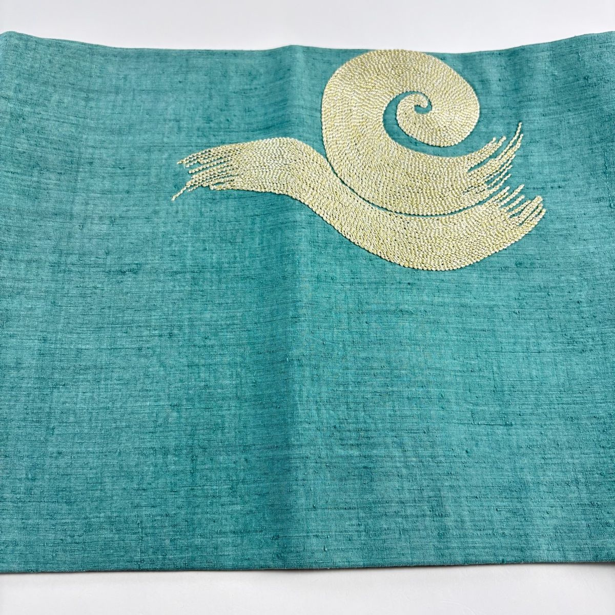 袋帯 秀品 紬地 幾何学模様 薄青緑 お太鼓柄 正絹 WWW_GLOBALQUALITYIMPORTS_COM