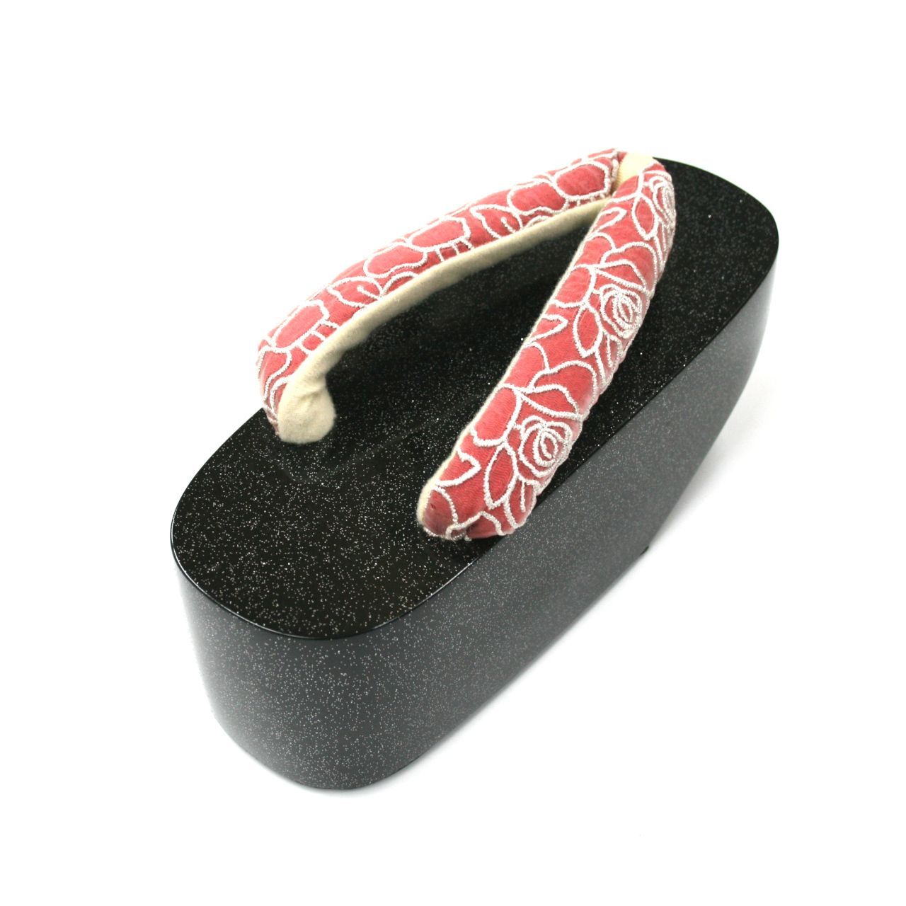 ぽっくり 刺繍鼻緒 黒台 ラメ入り