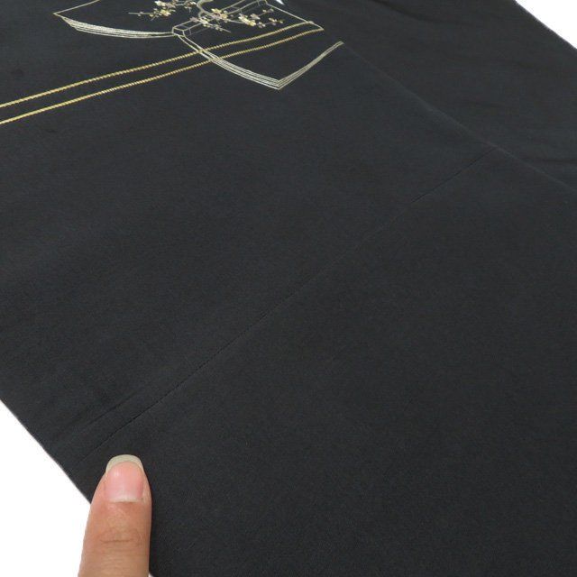 アンティーク 昼夜帯 リサイクル 正絹 お太鼓柄 刺繍 鳥と和本の図 黒色 多色 きもの北條 A1266-12 WWW_GLOBALQUALITYIMPORTS_COM