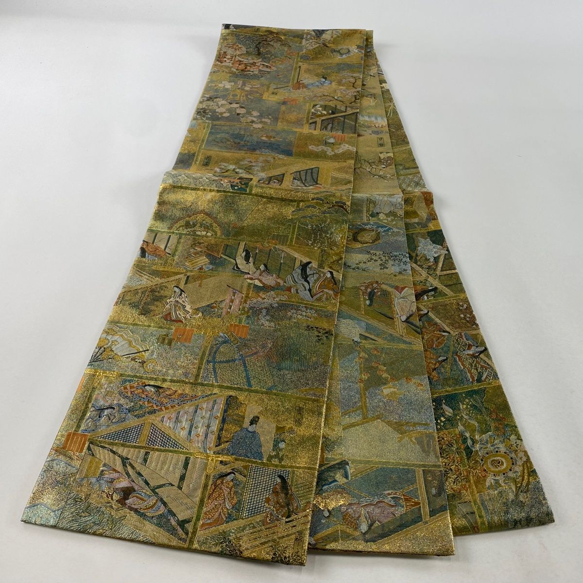 丸帯 落款 徳川美術館秘蔵 紫式部 源氏物語名鑑 人物 扇 箔 青緑 全通 正絹の検索結果