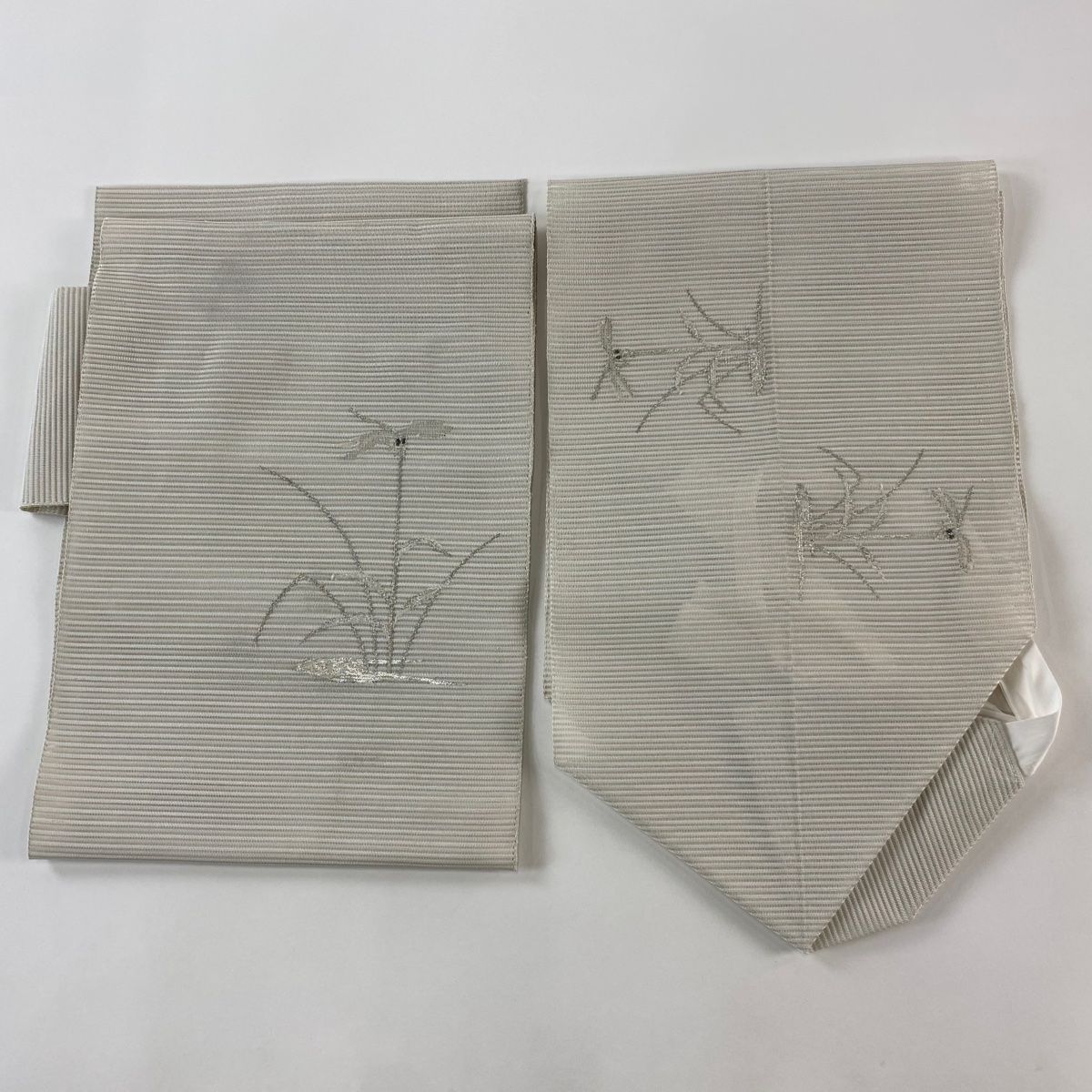 付け帯 秀品 夏帯 絽 作り帯 草花 銀糸 箔 灰白 正絹 WWW_GLOBALQUALITYIMPORTS_COM
