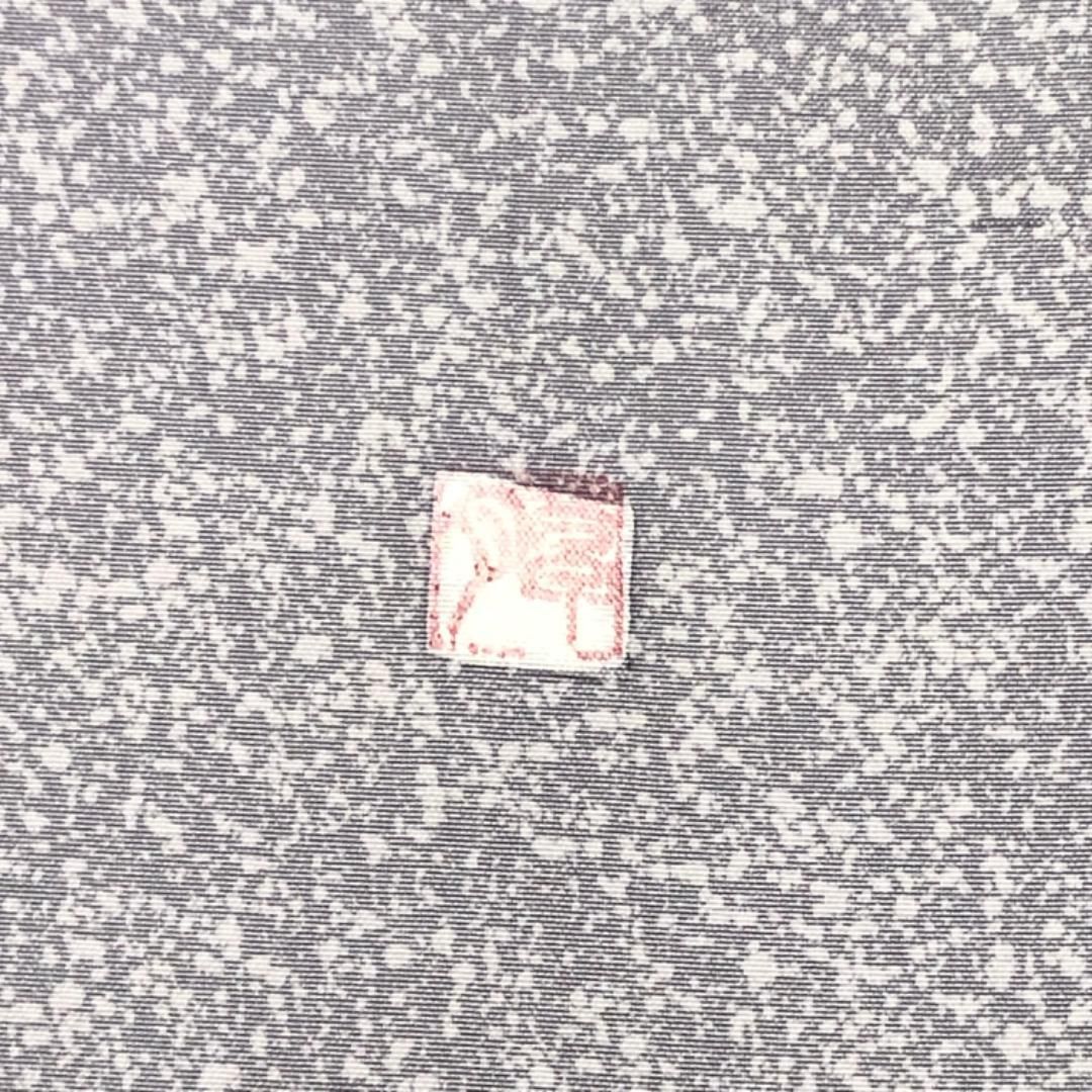 薄紫鼠色ベースのお色味に暈し、叩き染、抽象鹿模様の柄裄がデザインされた雰囲気の良い素敵なお品でございます。