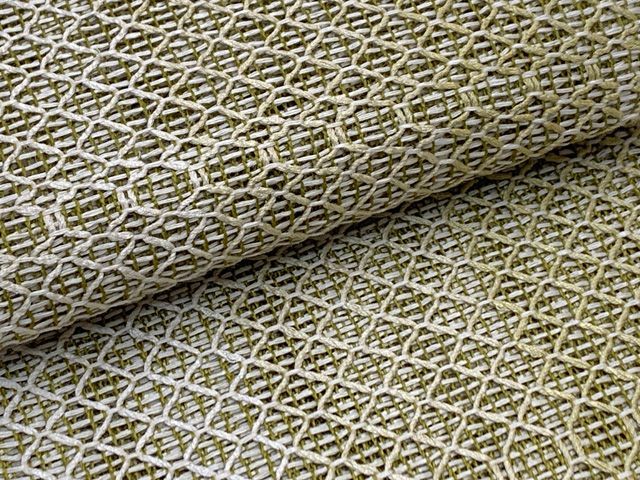 生地はしなやか絹の経糸に、グラデーションカラーの麻の緯糸で織りなされた通気性のいいメッシュ構造です。