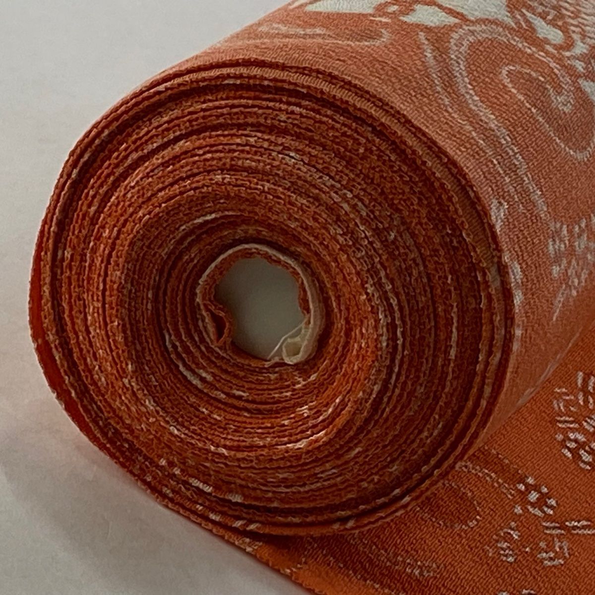 反物 秀品 小紋 落款 華文 菊 縮緬 オレンジ 正絹 WWW_GLOBALQUALITYIMPORTS_COM