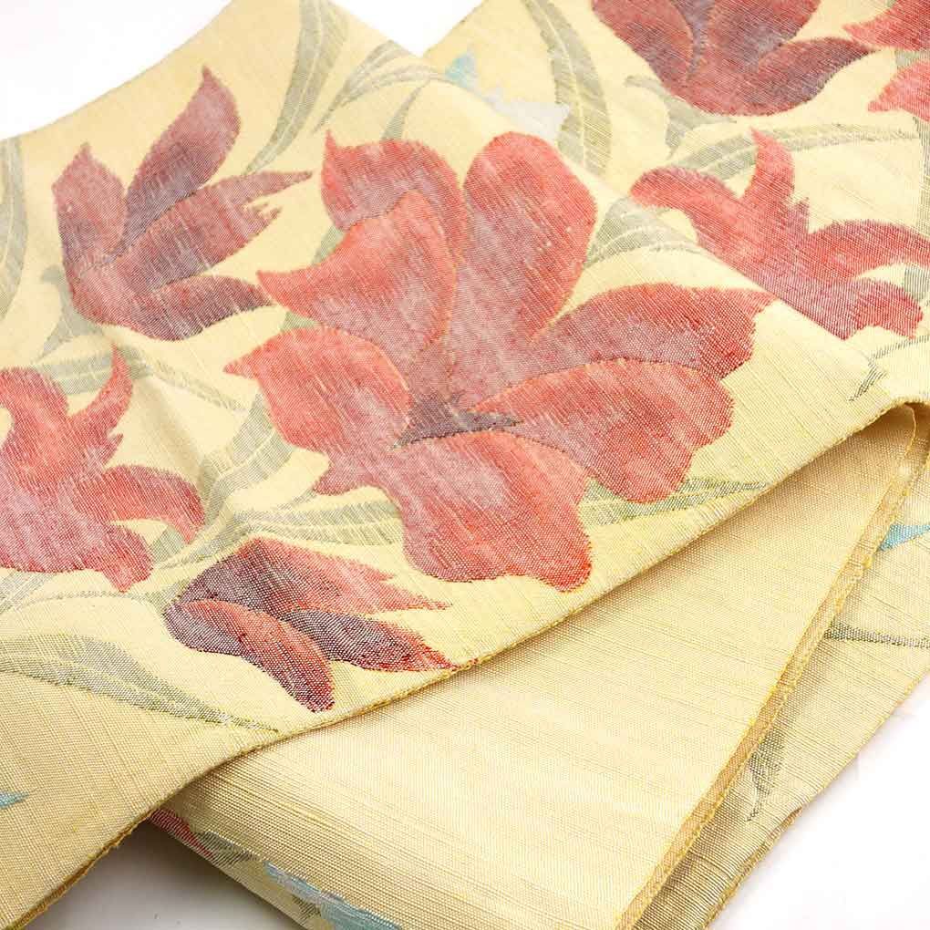 名古屋帯 幅31cm 長さ342cm レディース 花柄 秋冬春用 正絹 シルク イエロー リメイク リユース リサイクル 呉服のきくや GLOBALQUALITYIMPORTS_COM