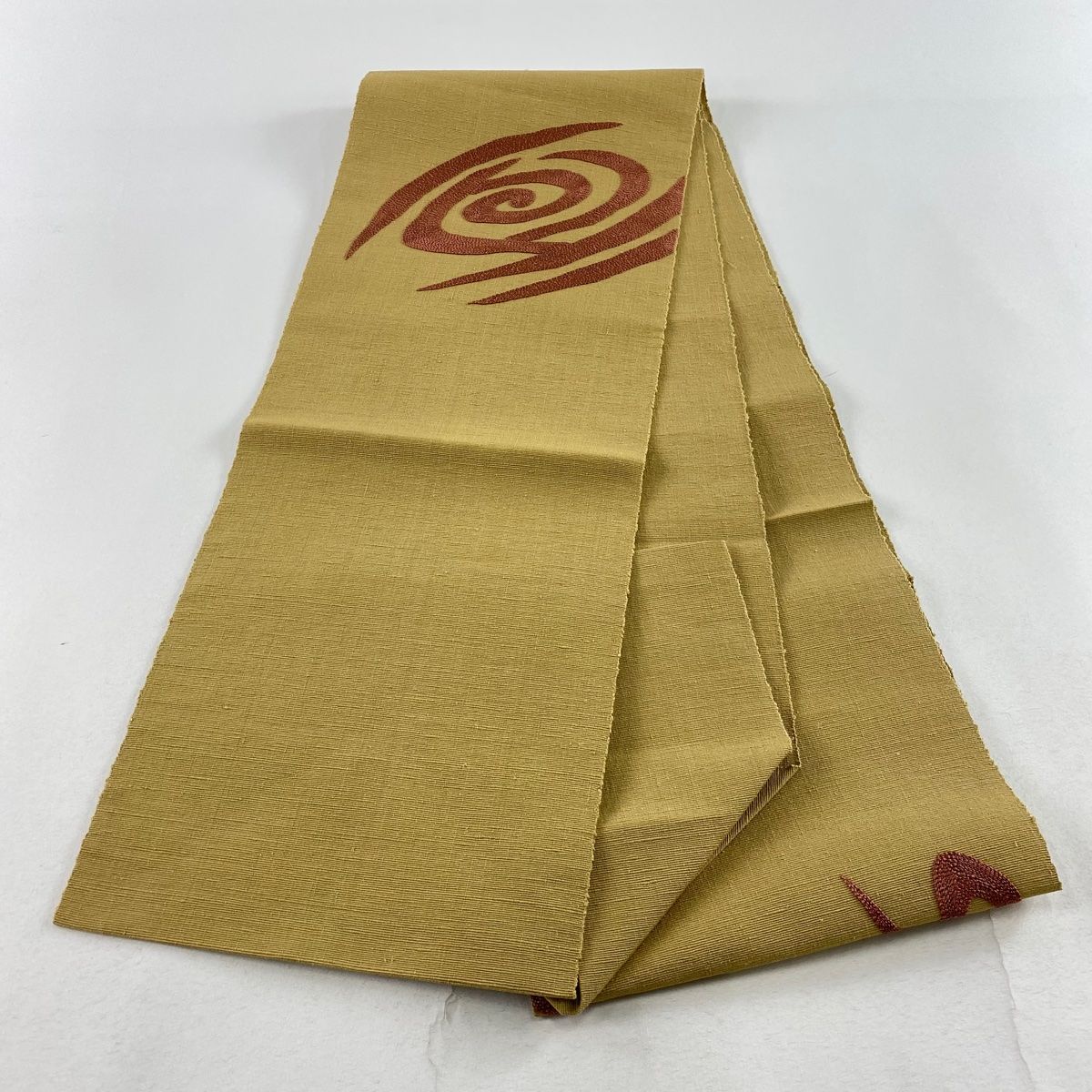 名古屋帯 松葉仕立て 八寸名古屋帯 渦巻き 刺繍 ベージュ 正絹の検索結果