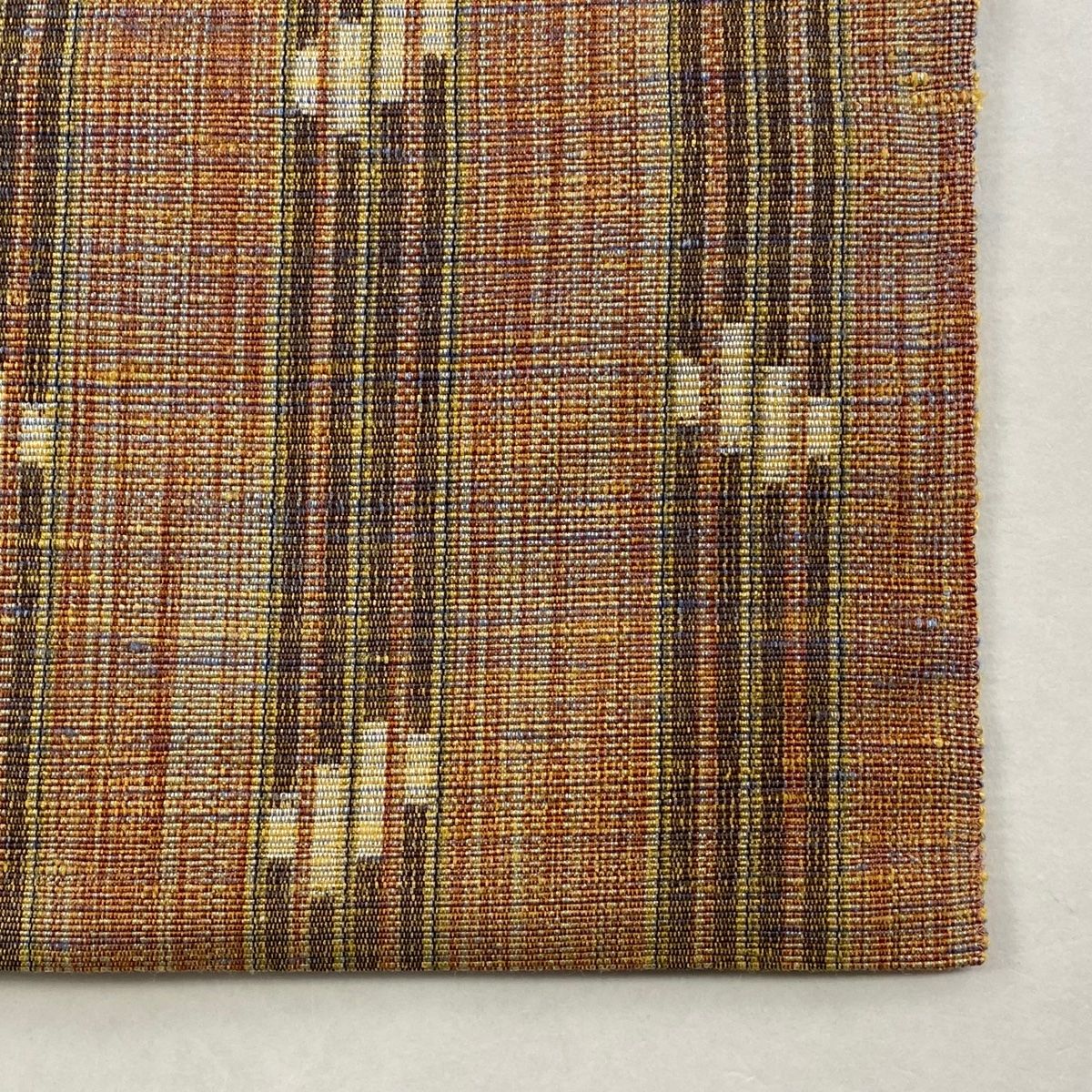 名古屋帯 証紙 八寸名古屋帯 松葉仕立て 琉球かすり 縞 赤茶 正絹 WWW_GLOBALQUALITYIMPORTS_COM