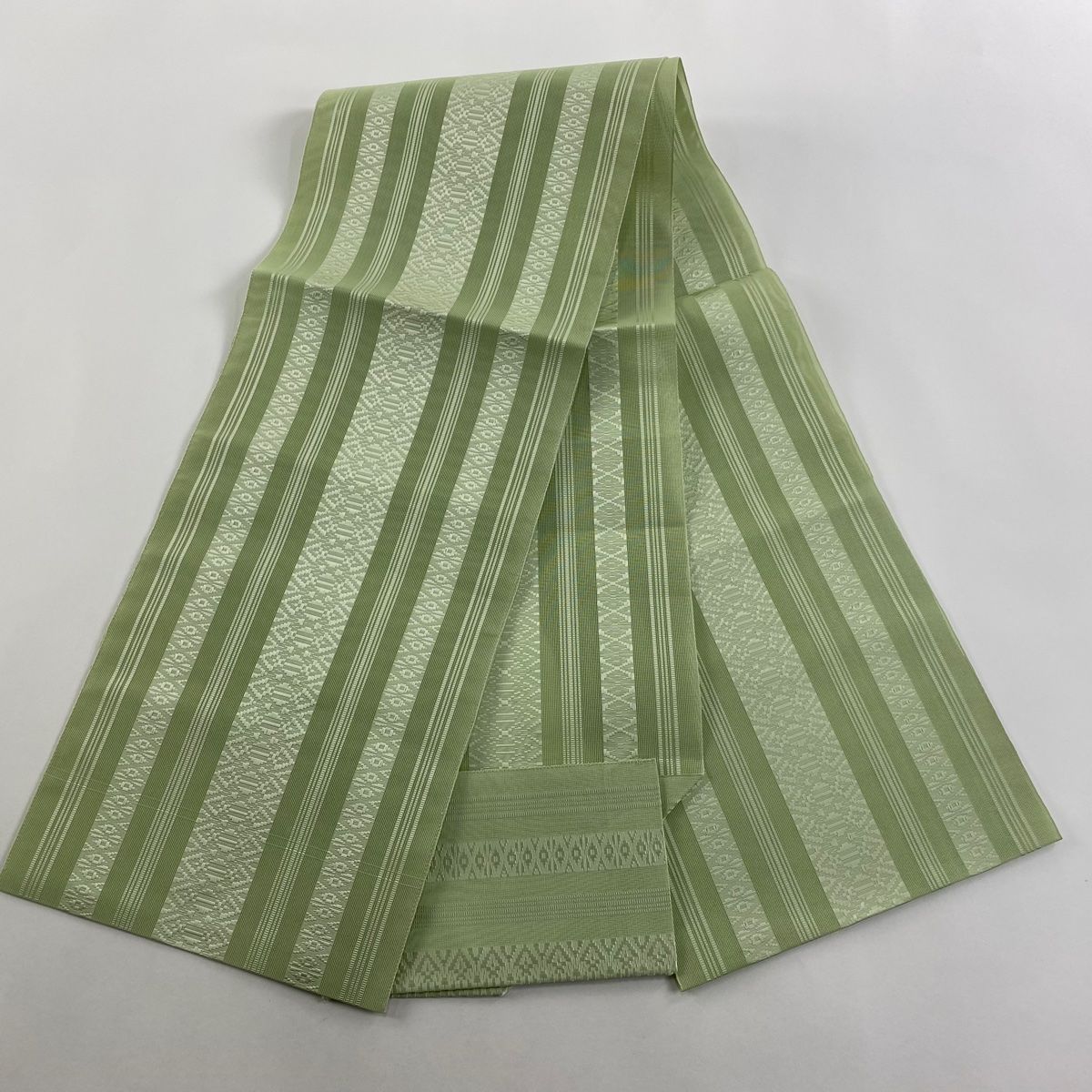 名古屋帯 証紙 夏帯 八寸名古屋帯 松葉仕立て 博多織 縞 幾何学 薄緑 正絹 WWW_GLOBALQUALITYIMPORTS_COM