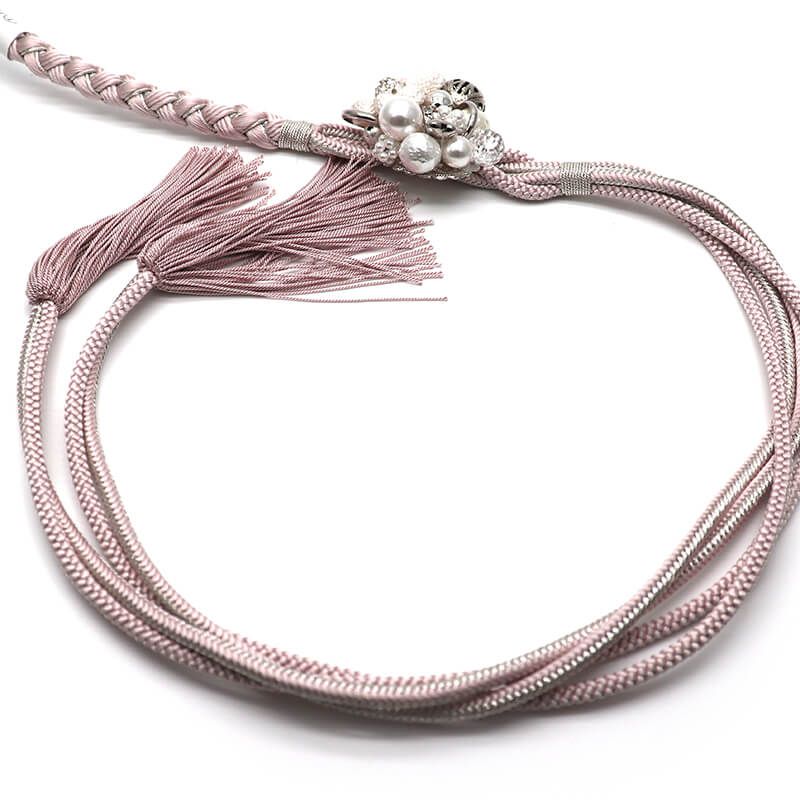 帯締め 振袖用 飾り付き 正絹 丸組 薄ピンク パール飾り 煌びやか 長さ160cm 幅1.2cm 着付け小物 和装小物の検索結果